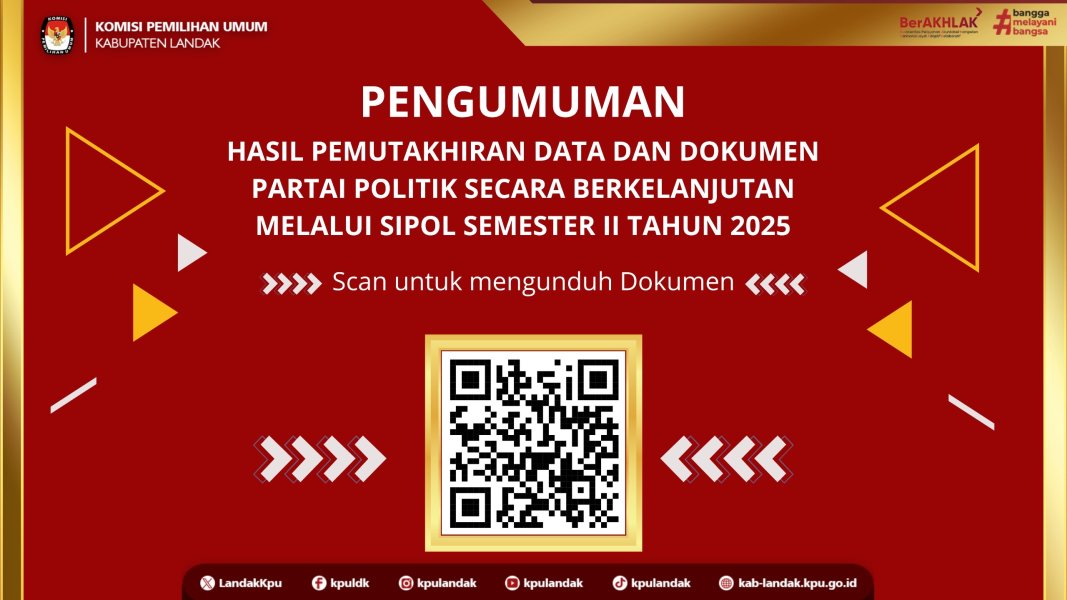 #TemanPemilih, Berikut Pengumuman mengenai Hasil Pemutakhiran Data dan Dokumen Partai Politik Secara Berkelanjutan melalui Sistem Informasi Partai Politik (SIPOL) Semester II Tahun 2025.
