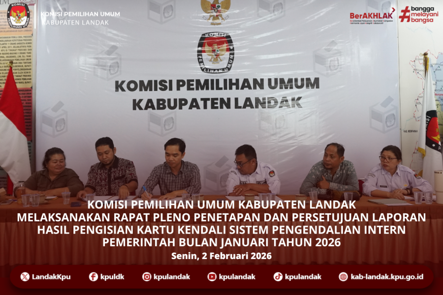 #TemanPemilih, KPU Kabupaten Landak melaksanakan Rapat Pleno Penetapan dan Persetujuan Laporan Hasil Pengisian Kartu Kendali Sistem Pengendalian Intern Pemerintah Bulan Januari Tahun 2026, Senin (2/2/2026) bertempat di Aula Kantor KPU Kabupaten Landak.