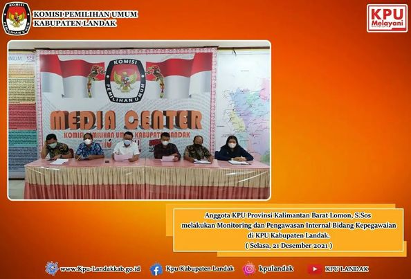Anggota KPU Provinsi Kalimantan Barat Lomon, S.Sos melakukan Monitoring dan Pengawasan Internal Bidang Kepegawaian di KPU Kabupaten Landak. (Selasa, 21 Desember 2021).