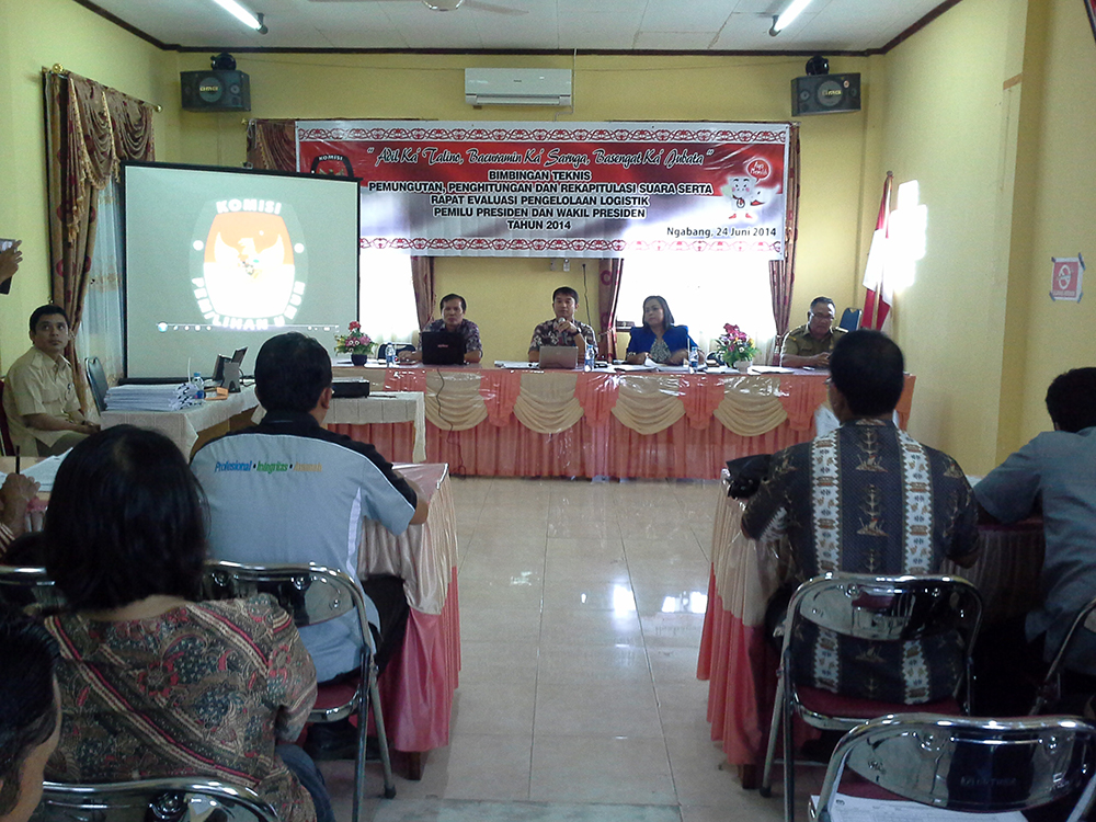 KPU Kabupaten Landak mengadakan BIMBINGAN TEKNIS PEMUNGUTAN, PENGHITUNGAN DAN REKAPITULASI SUARA SERTA RAPAT EVALUASI PENGELOLAAN LOGISTIK PEMILU PRESIDEN DAN WAKIL PRESIDEN TAHUN 2014 yang bertempat di Aula Kantor KPU Kabupaten Landak, 24/6.