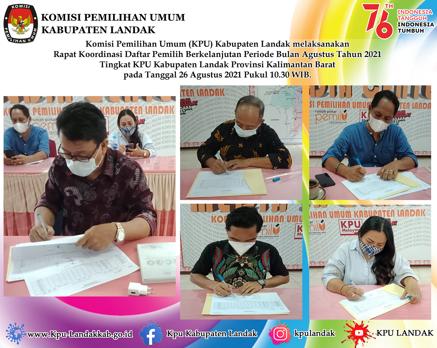 Komisi Pemilihan Umum (KPU) Kabupaten Landak melaksanakan Rapat Koordinasi Daftar Pemilih Berkelanjutan Periode Bulan Agustus Tahun 2021 Tingkat KPU Kabupaten Landak Provinsi Kalimantan Barat pada Tanggal 26 Agustus 2021 Pukul 10.30 WIB.