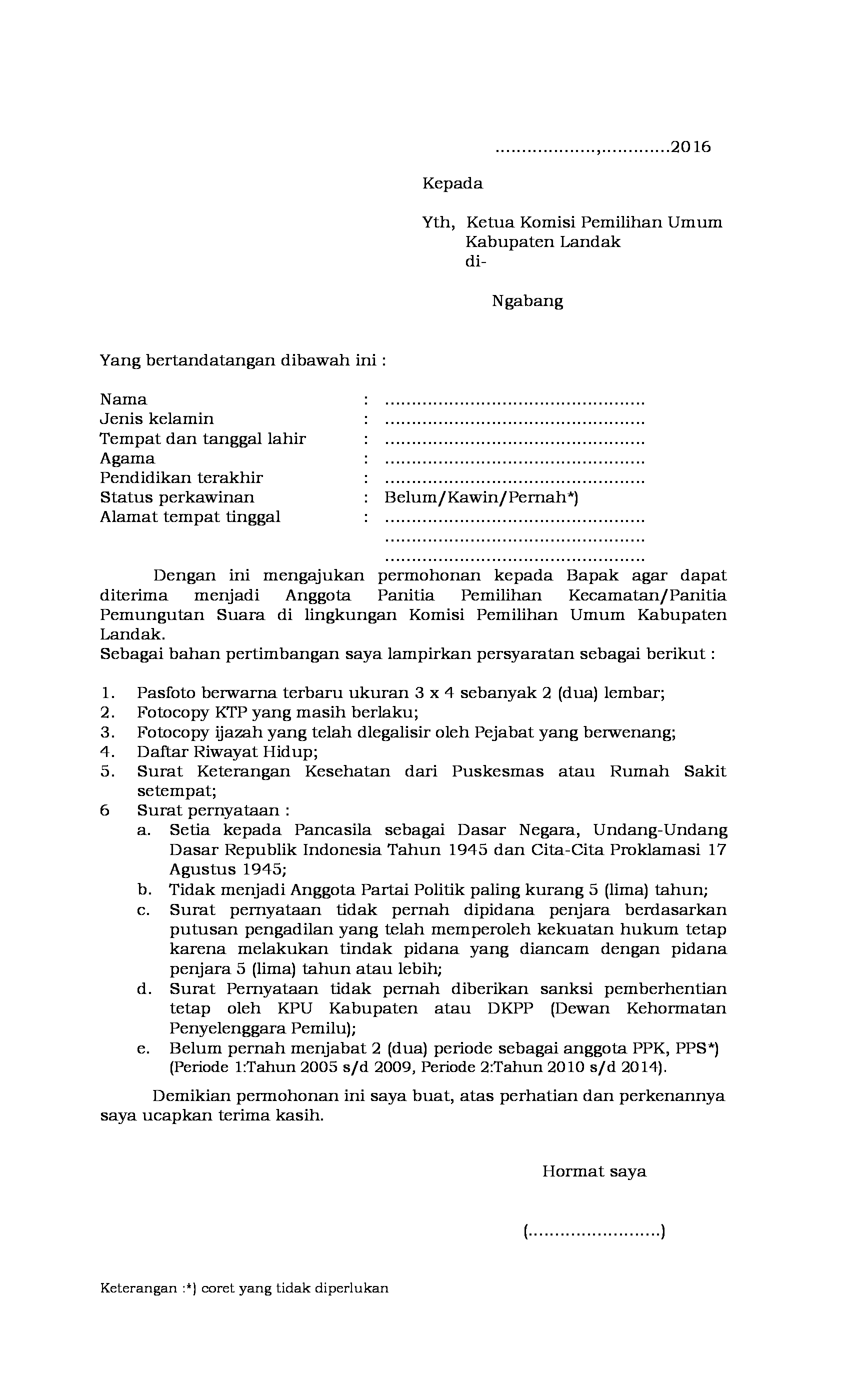 FORMULIR PENDAFTARAN PPK DAN PPS PEMILIHAN BUPATI DAN WAKIL BUPATI LANDAK TAHUN 2017