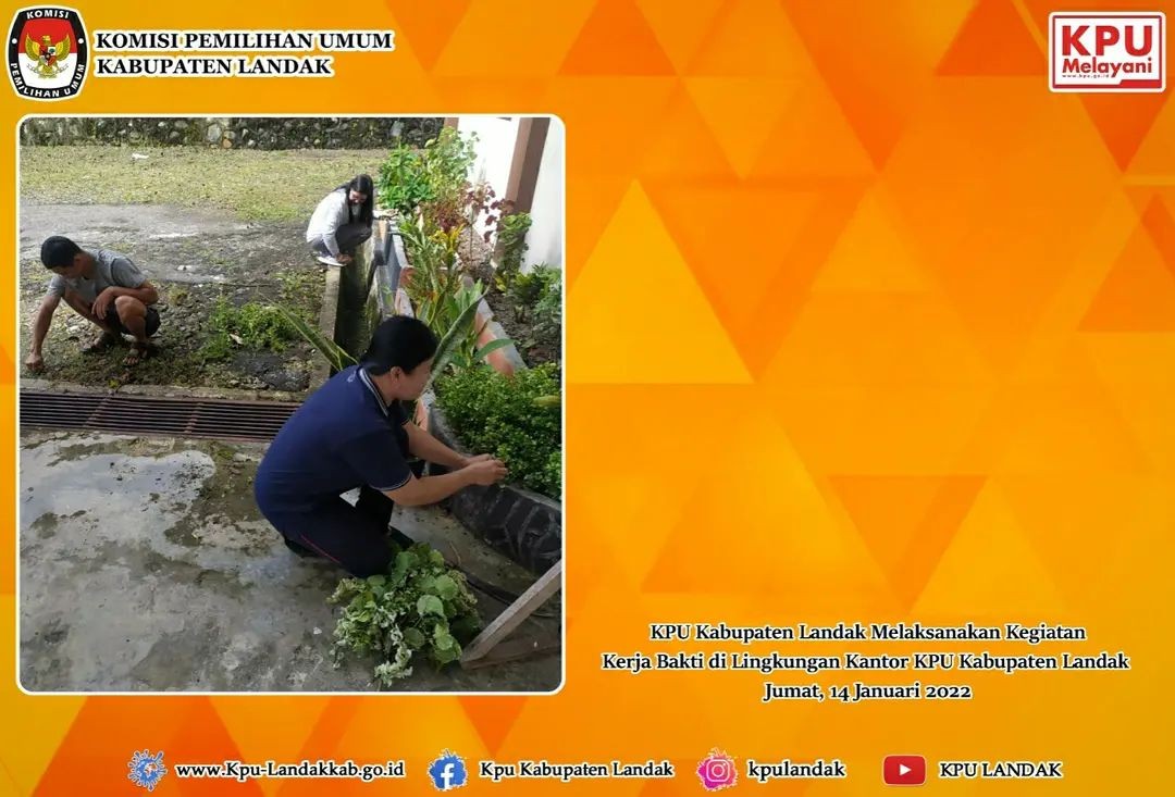 KPU Kabupaten Landak Melaksanakan Kegiatan Kerja Bakti di Lingkungan Kantor KPU Kabupaten Landak.