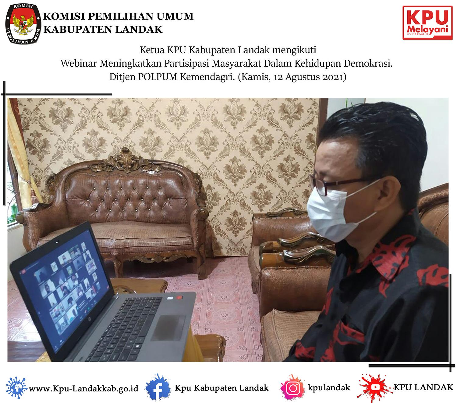 Ketua KPU Kabupaten Landak mengikuti Webinar " Meningkatkan Partisipasi Masyarakat Dalam Kehidupan Demokrasi. Ditjen POLPUM Kemendagri ".