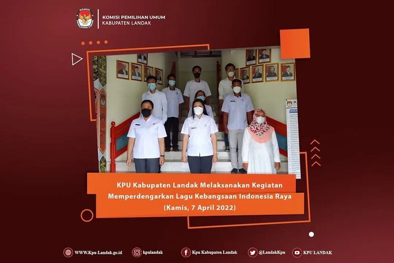 Kamis, 7 April 2022. Komisi Pemilihan Umum Kabupaten Landak Melaksanakan Kegiatan Memperdengarkan Lagu Kebangsaan Indonesia.