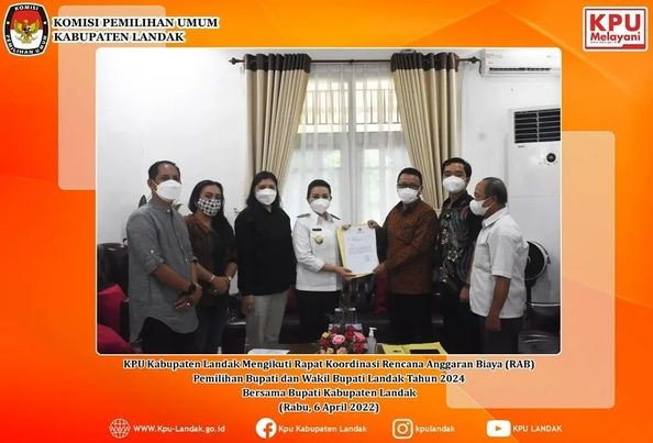 Rabu, 6 April 2022, Komisi Pemilihan Umum Kabupaten Landak Mengikuti Rapat Koordinasi Rencana Anggaran Biaya (RAB) Pemilihan Bupati dan Wakil Bupati Tahun 2024 Bersama Bupati Kabupaten Landak.