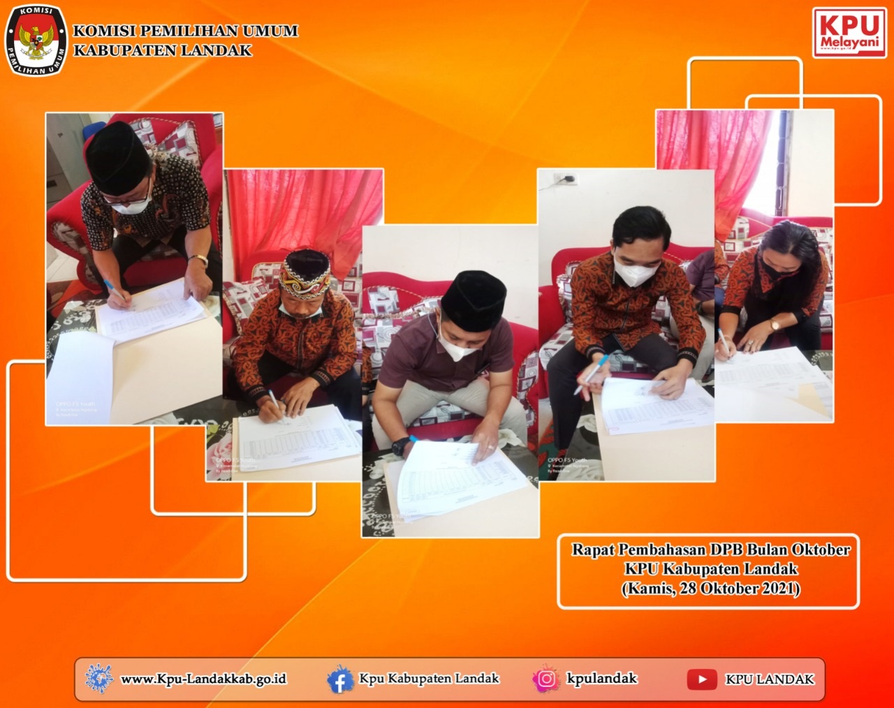 Komisi Pemilihan Umum (KPU) Kabupaten Landak melaksanakan Rapat Koordinasi Daftar Pemilih Berkelanjutan Periode Bulan Oktober Tahun 2021 Tingkat KPU Kabupaten Landak Provinsi Kalimantan Barat pada Tanggal 28 Oktober 2021 Pukul 10.00 WIB.