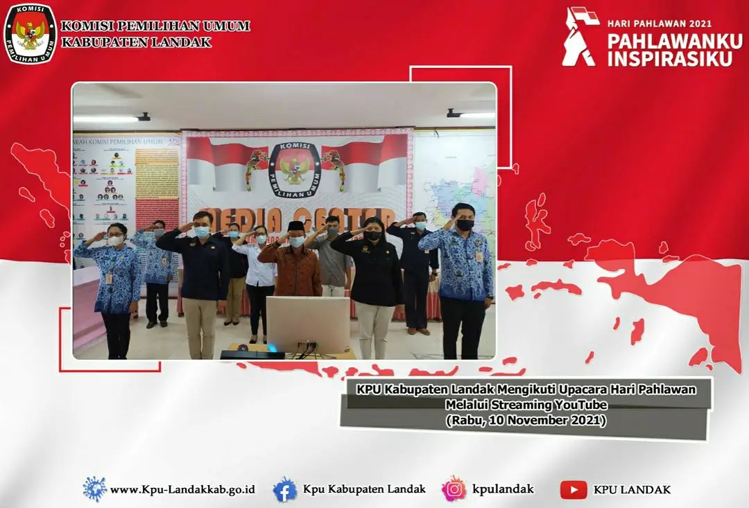 KPU Kabupaten Landak mengikuti Upacara Hari Pahlawan melalui Streaming YouTube ( Rabu, 10 November 2021).