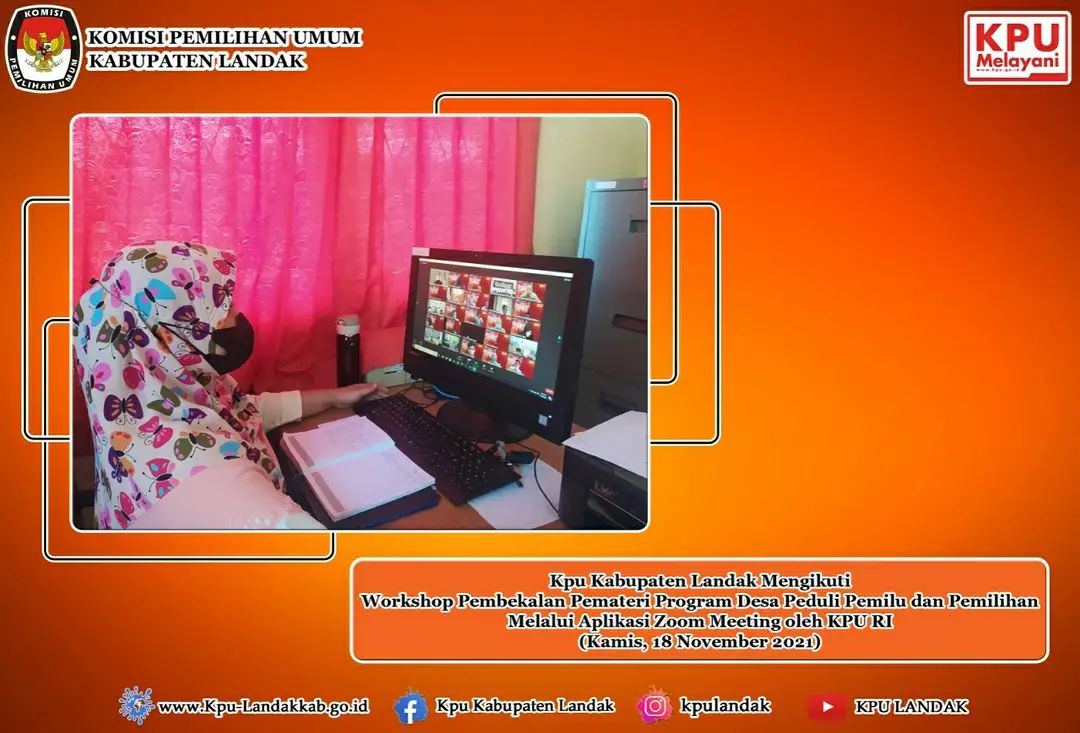 KPU Kabupaten Landak Mengikuti Workshop Pembekalan Materi Program Desa Peduli Pemilu dan Pemilihan Melalui Aplikasi Zoom Meeting oleh KPU RI.
