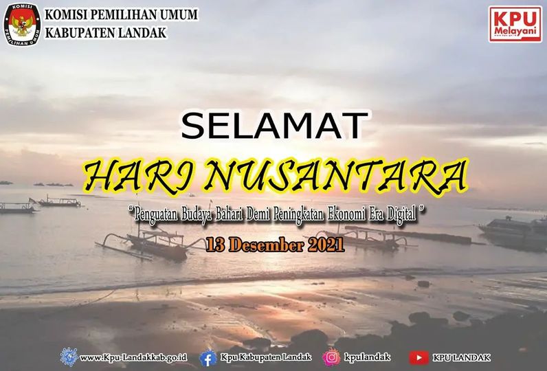 KPU Kabupaten Landak mengucapkan Selamat Hari Nusantara 13 Desember 2021. " Penguatan Budaya Bahari Demi Peningkatan Ekonomi Era Digital ".