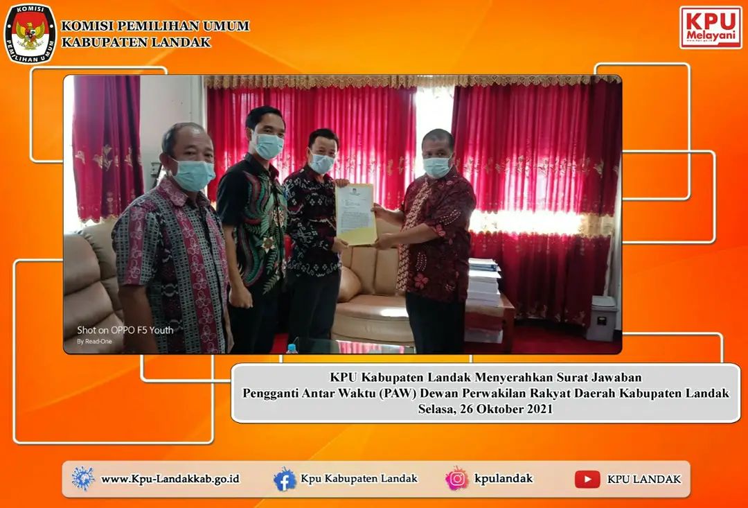 KPU Kabupaten Landak Menyerahkan Surat Jawaban PAW Anggota DPRD Kabupaten Landak