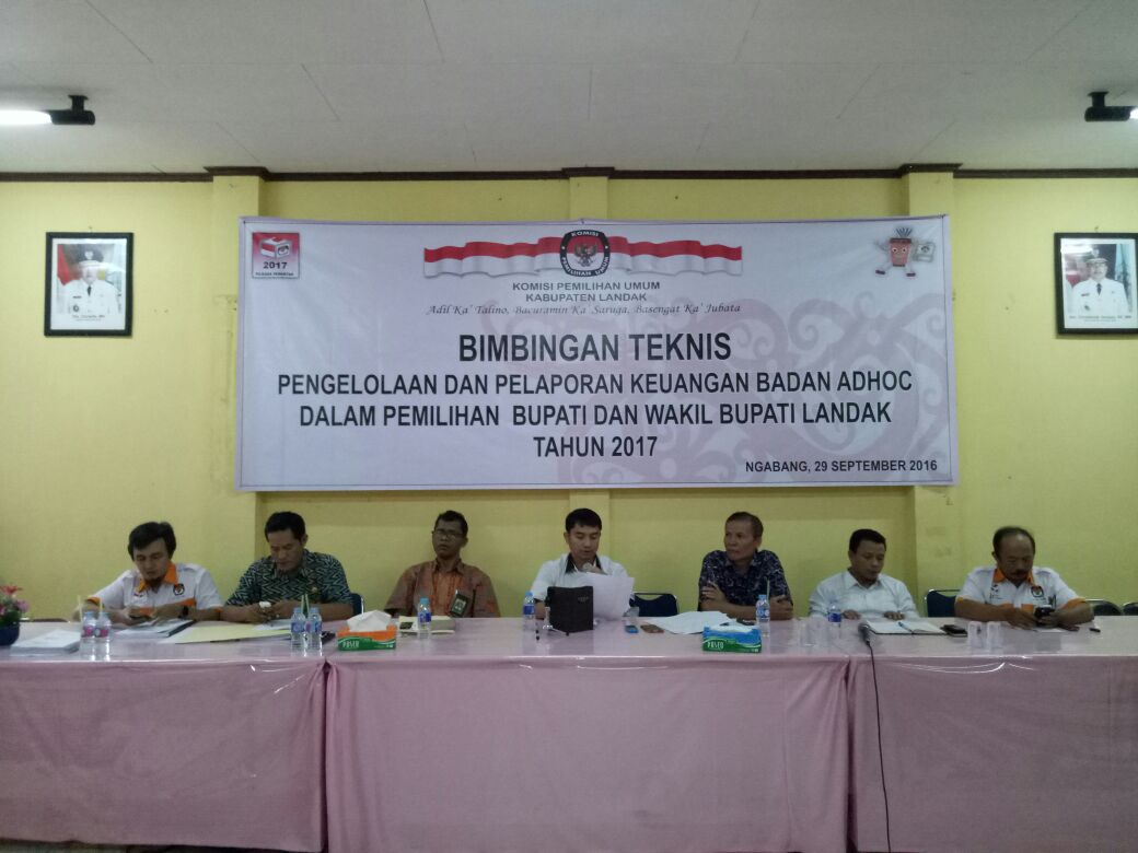 Komisi Pemilihan Umum (KPU) Kabupaten Landak, melaksanakan bimbingan teknis pengelolaan dan pelaporan keuangan badan ad hoc dalam Pemilihan Bupati dan Wakil Bupati Landak Tahun 2017 di Aula Sekretariat KPU Kabupaten Landak, kamis (29-30/9/2016).