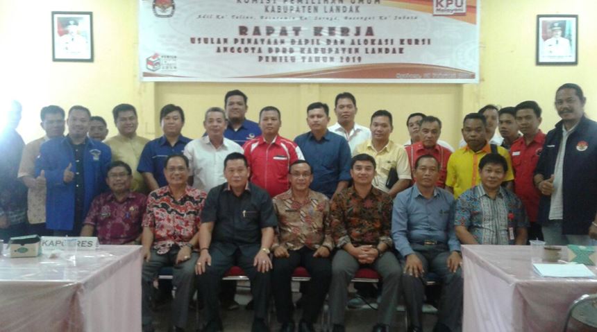 KPU Landak selenggarakan Rapat Kerja Usulan Penataan Dapil dan Alokasi Kursi Anggota DPRD Kabupaten Landak Pemilu Tahun 2019, hari Kamis 8 Februari 2018 di Aula Kantor KPU Landak dihadiri oleh unsur pimpinan daerah yakni Asisten II yang mewakili Bupati, Pimpinan DPRD, Kasat Intel Polres Landak, Kadis Dukcapil, Kepala Kesbangpol, Ketua Panwaslu beserta para Pimpinan Partai Politik se-Kabupaten Landak.