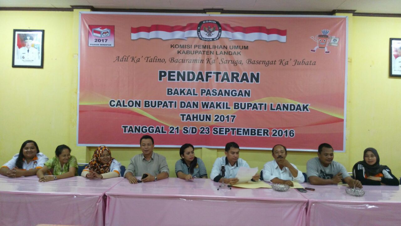 KPU Kabupaten Landak secara resmi menutup pendaftaran Bakal Pasangan Calon Bupati dan Wakil Bupati Landak Tahun 2017 pada hari terakhir tanggal 23 September 2016 jam 24.00 WIB. Sampai dengan batas waktu tersebut hanya terdapat 1 (satu) Bakal Pasangan Calon yang mendaftar di KPU Landak, yaitu Bakal Pasangan Calon Bupati dr. Karolin Margret Natasa dan Bakal Calon Wakil Bupati Herculanus Heriadi, SE. Bakal Pasangan Calon tersebut mendaftar ke KPU Landak tanggal 23 September 2016 sekitar jam 11.00 yang diajukan oleh Gabungan Partai Politik PDIP, Nasdem, Golkar, Gerindra, Demokrat, PAN, PKB dan Hanura dengan jumlah kursi 32.