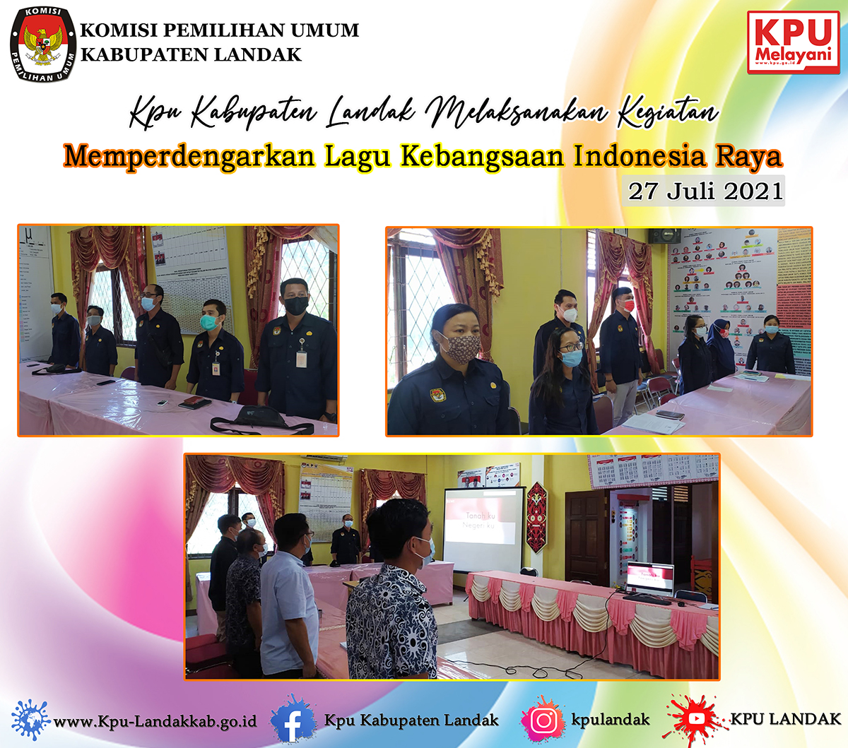 Implementasi dari Surat KPU Republik Indonesia Nomor 604/SDM.03.5-SD/05/KPU/VI/2021, perihal Himbauan Pelaksanaan Apel Pagi, KPU Kabupaten Landak Melaksanakan Kegiatan Memperdengarkan Lagu Kebangsaan Indonesia Raya. (Selasa, 27 Juli 2021).