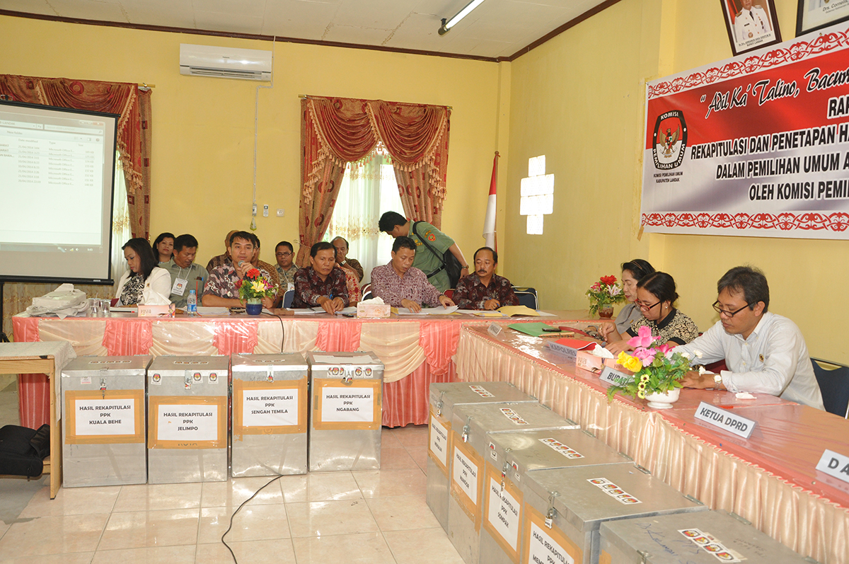 Pada tanggal 20 s.d 21 April 2014 telah dilaksanakan Rapat Pleno Terbuka Rekapitulasi Penghitungan dan Penetapan Hasil Penghitungan Suara pada Pemilu Umum Anggota DPR, DPD dan DPRD Tahun 2014 dengan tertib, aman dan lancar.