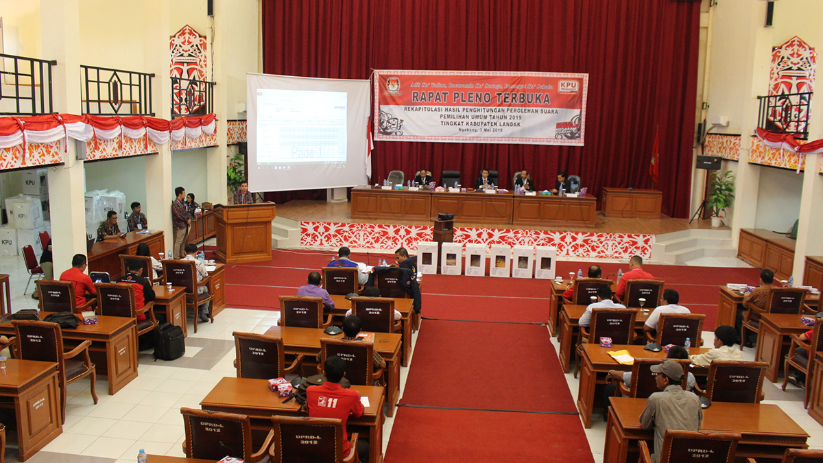 KPU Kabupaten Landak- Mengadakan Rapat Pleno Terbuka Rekapitulasi Hasil Perhitungan Perolehan Suara Pemilihan Umum Tahun 2019 di Kantor DPRD Kabupaten Landak, Jumat 3 mei 2019.