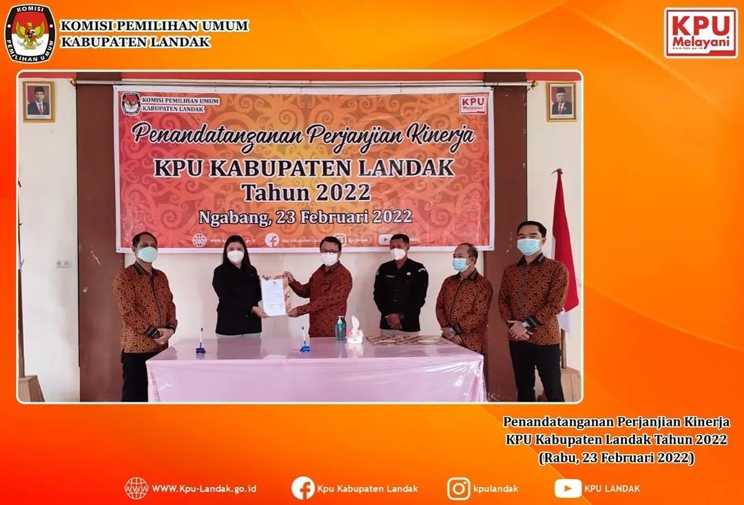 Penandatanganan Perjanjian Kinerja Komisi Pemilihan Umum Kabupaten Landak Tahun 2022.