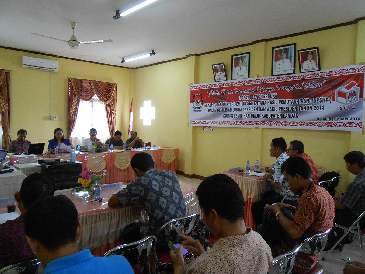 KPU Kabupaten Landak mengadakan Rapat Pleno Terbuka Rekapitulasi Daftar Pemilih Sementara Hasil Pemutakhiran (DPSHP) dalam Pemilihan Umum Presiden dan Wakil Presiden tahun 2014 yang bertempat di Aula Kantor KPU Kabupaten Landak, 15/5.