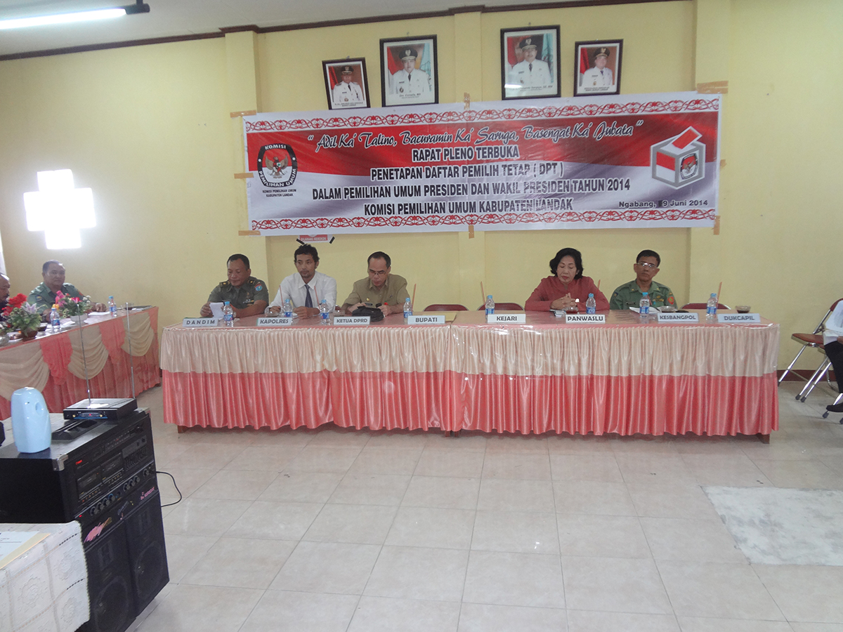 KPU Kabupaten Landak mengadakan Rapat Pleno Terbuka Rekapitulasi Daftar Pemilih Tetap (DPT) dalam Pemilihan Umum Presiden dan Wakil Presiden tahun 2014 yang bertempat di Aula Kantor KPU Kabupaten Landak, 9/6.
