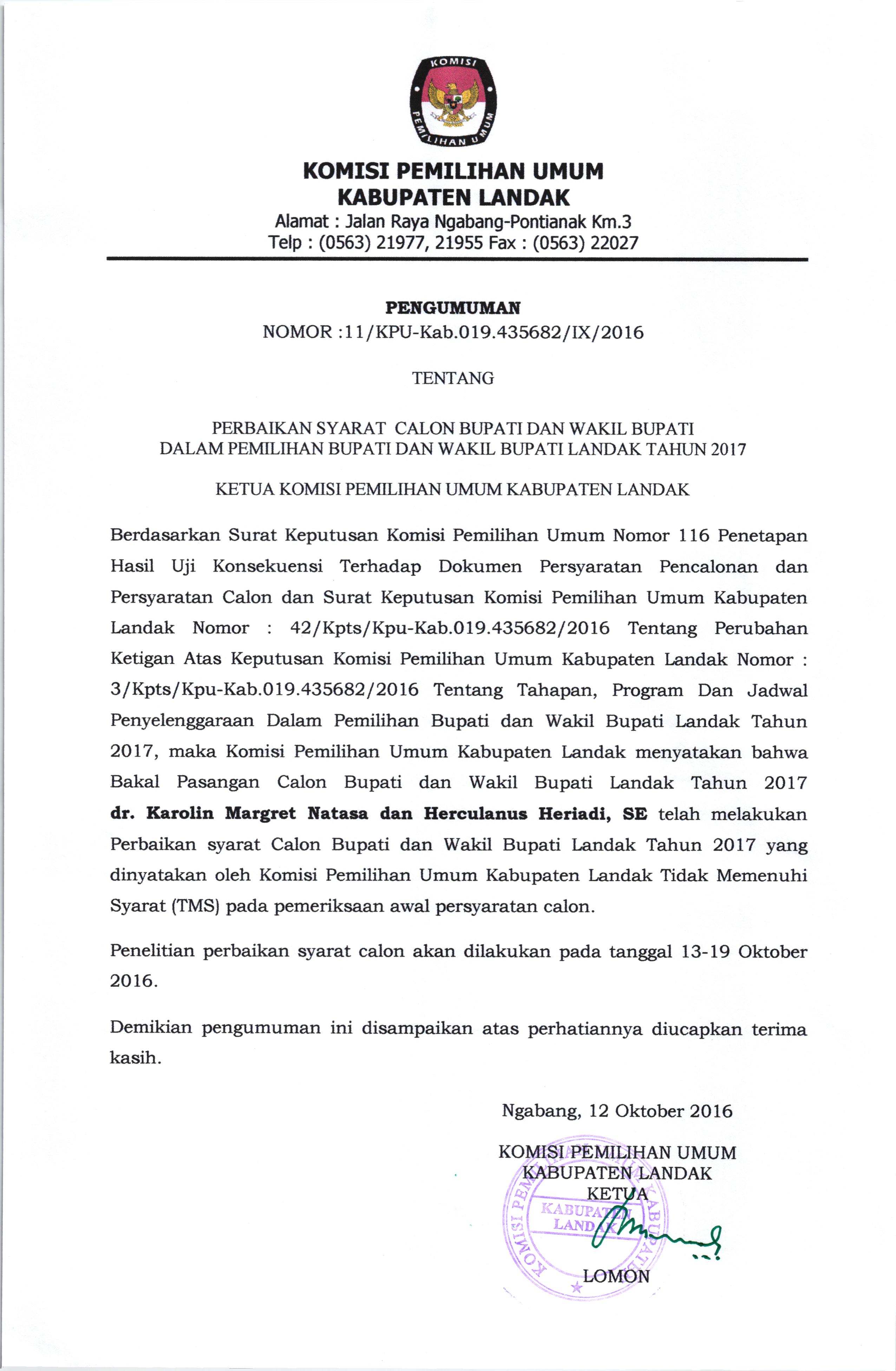 Perbaikan Syarat Calon Bupati dan Wakil Bupati dalam Pemilihan Bupati dan Wakil Bupati Landak Tahun 2017
