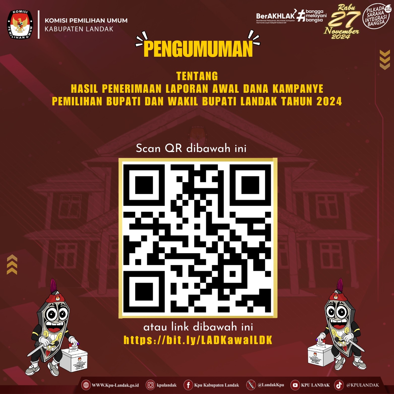 PENGUMUMAN HASIL PENERIMAAN LAPORAN AWAL DANA KAMPANYE PEMILIHAN BUPATI DAN WAKIL BUPATI LANDAK TAHUN 2024