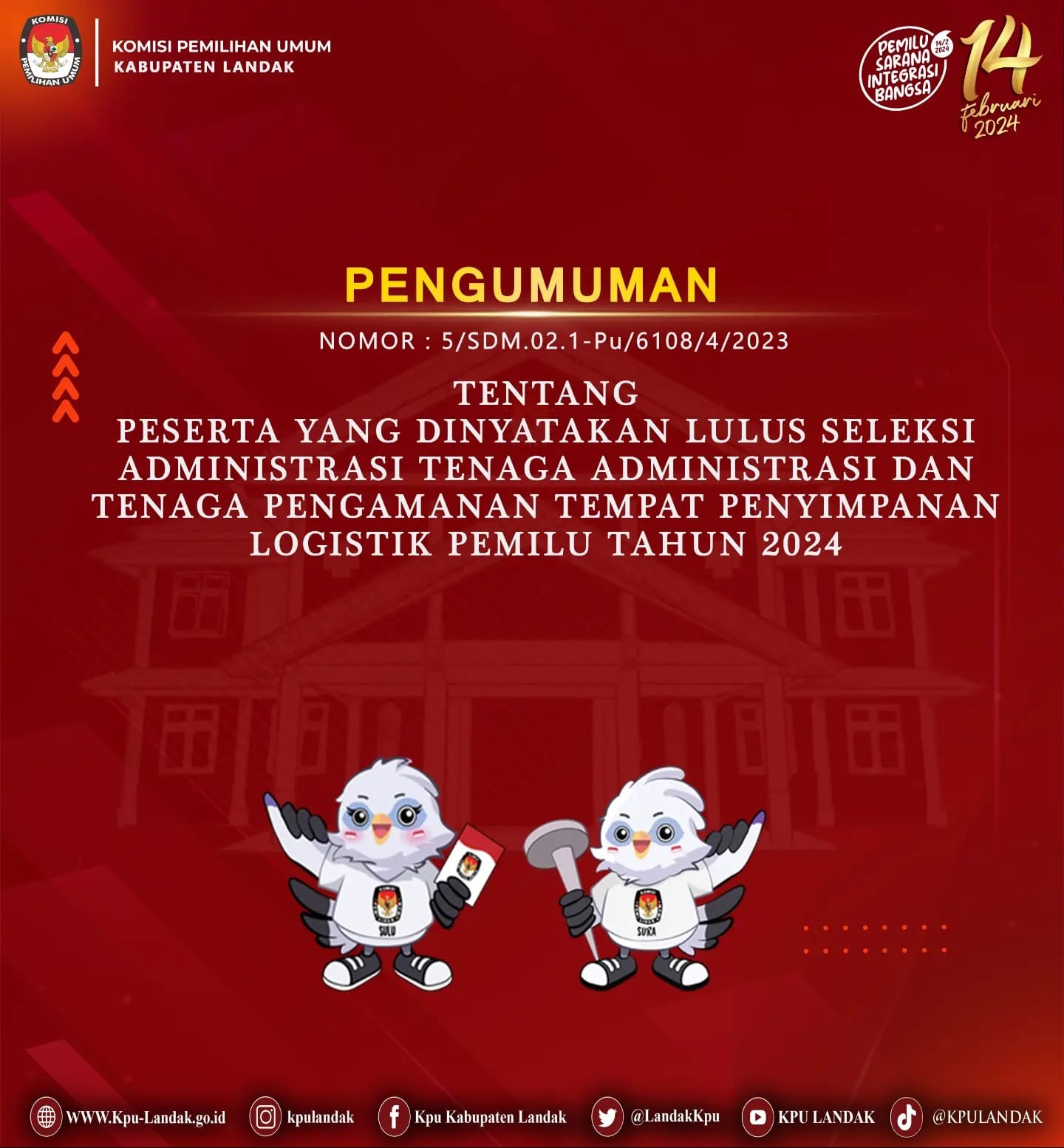 Pengumuman Hasil Seleksi Administrasi Tenaga Administrasi dan Tenaga Pengamanan Tempat Penyimpanan Logistik Pemilu Tahun 2024