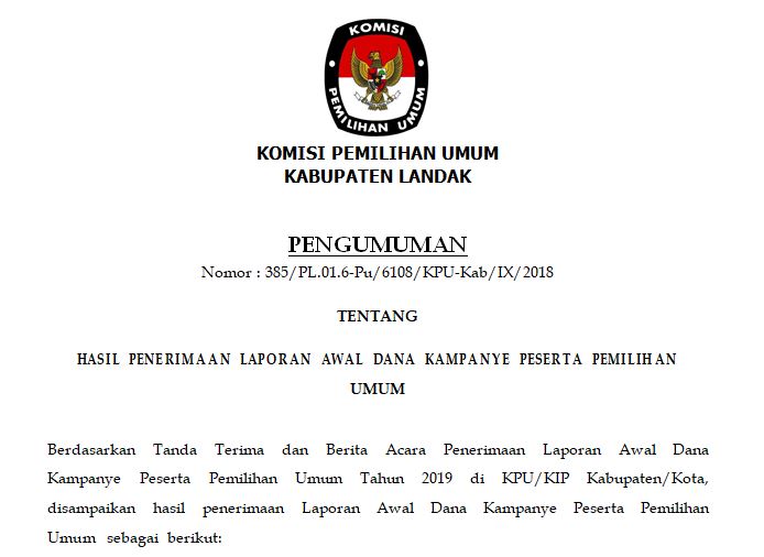 Pengumuman LADK Peserta Pemilu Tahun 2019