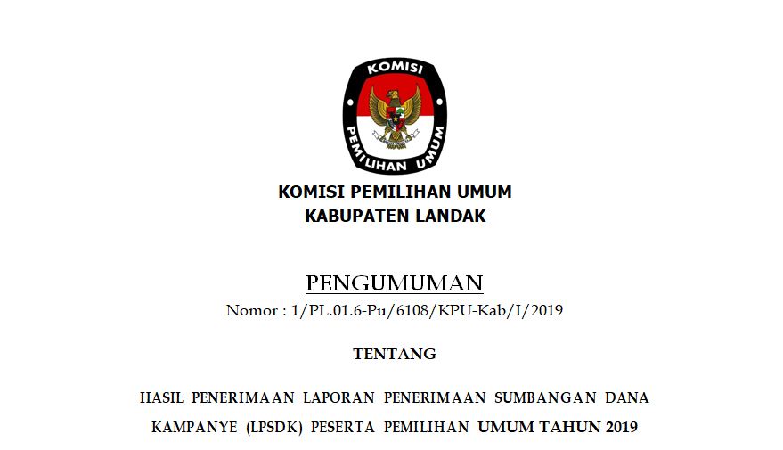 \Nomor : 1/PL.01.6-Pu/6108/KPU-Kab/I/2019