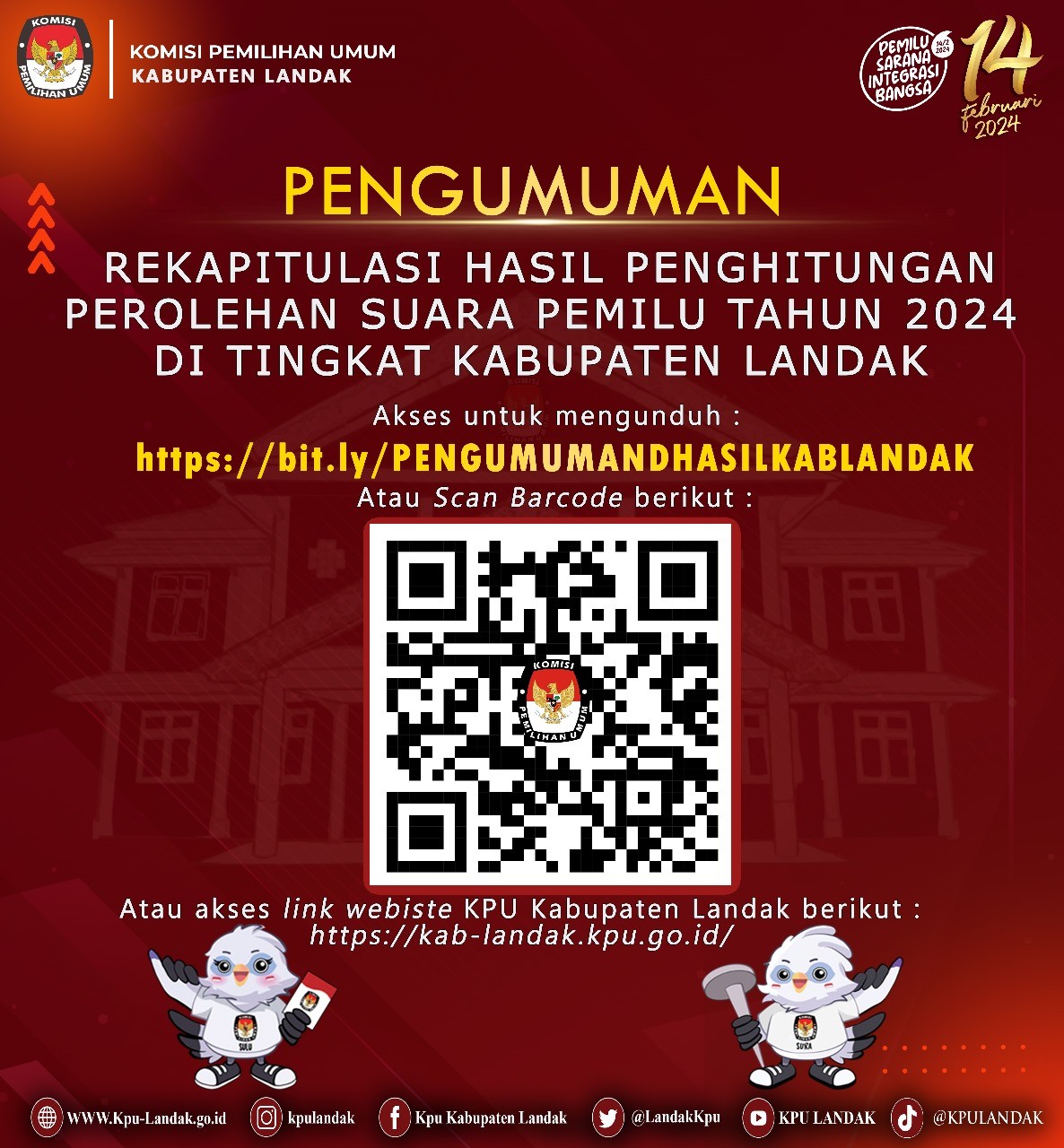 PENGUMUMAN REKAPITULASI HASIL PENGHITUNGAN PEROLEHAN SUARA PEMILU TAHUN 2024 DI TINGKAT KABUPATEN LANDAK