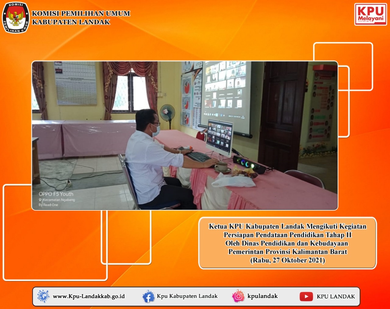 Ketua KPU Kabupaten Landak Mengikuti Kegiatan Persiapan Pendataan Pendidikan Tahap II oleh Dinas Pendidikan dan Kebudayaan Pemerintah Provinsi Kalimantan Barat melalui aplikasi Zoom Meeting.