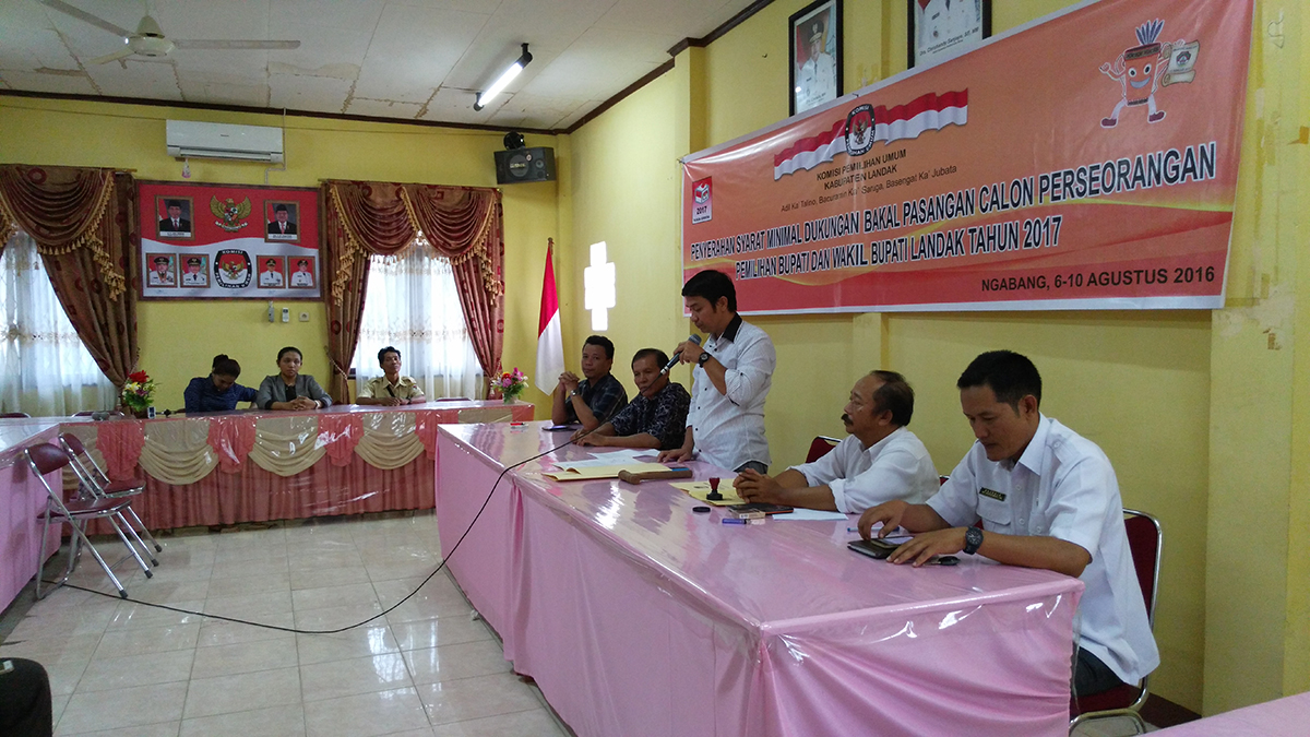 Bahwa Jadwal Penyerahan Syarat Dukungan Pasangan Calon Perseorangan Dalam Pemilihan Bupati dan Wakil Bupati Landak Tahun 2017 dilaksanakan pada tanggal 6 – 10 Agustus 2016, pukul 08.00 – 16.00 WIB bertempat di Sekretariat KPU Kabupaten Landak.