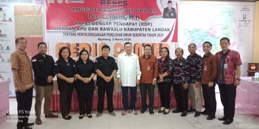 Reses Anggota Komisi II DPR RI, Drs. Cornelis, M.H dengan agenda Rapat Dengar Pendapat (RDP) dengan KPU dan Bawaslu Kabupaten Landak Tentang Penyelenggaraan Pemilihan Umum Serentak Tahun 2024. Rapat dilaksanakan pada hari Kamis, 5 Maret 2020 bertempat di Aula Kantor KPU Kabupaten Landak.