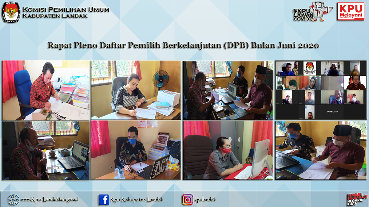 Pada Hari Selasa, 7 Juli 2020. KPU Kabupaten Landak melaksanakan Rapat Pleno Rekapitulasi Daftar Pemilih Berkelanjutan (DPB) di tingkat Kabupaten Landak via Zoom Meeting yang diikuti oleh Bawaslu, Disdukcapil dan Partai Politik.