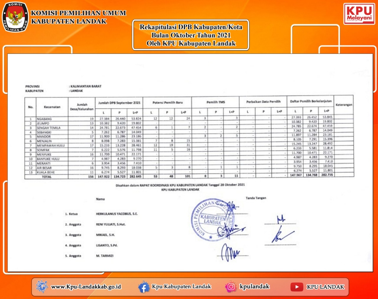Rekapitulasi DPB Kabupaten/Kota Bulan Oktober Tahun 2021 oleh KPU Kabupaten Landak.