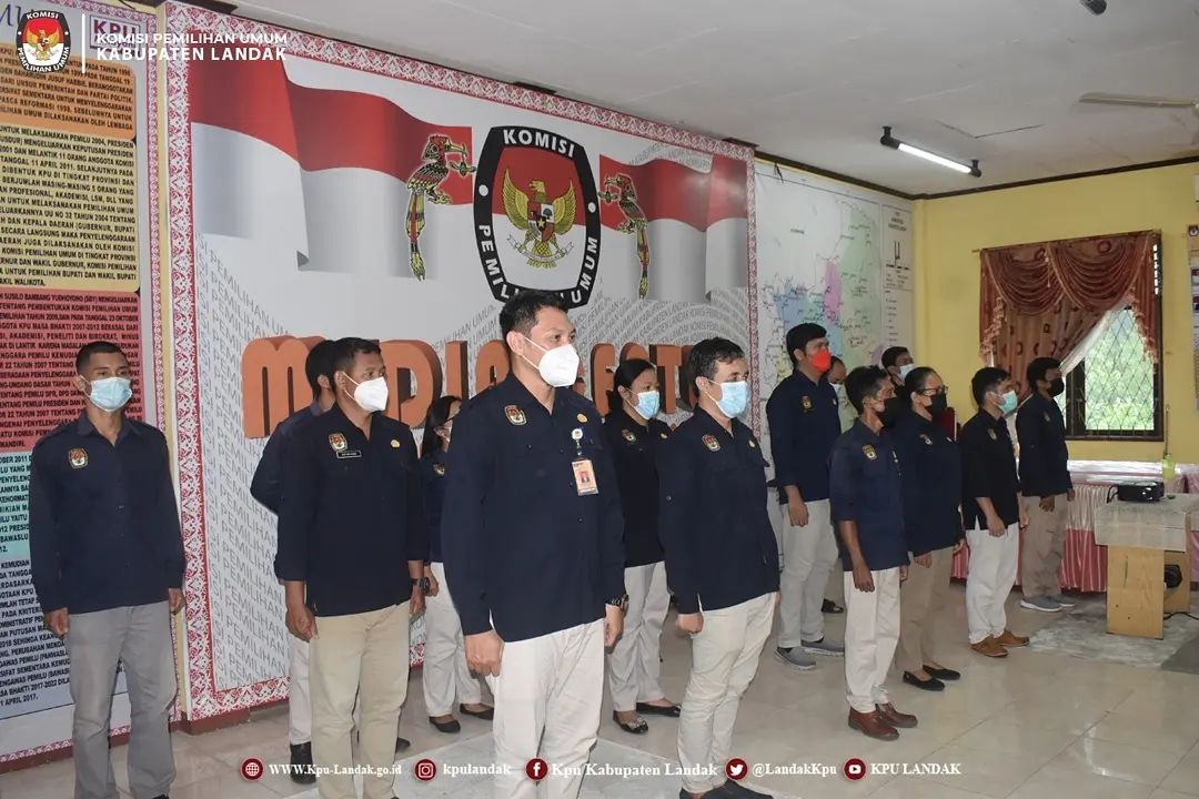 Sekretariat KPU Kabupaten Landak Mengikuti Apel Penerimaan Anggota KPU RI Periode 2022 - 2027