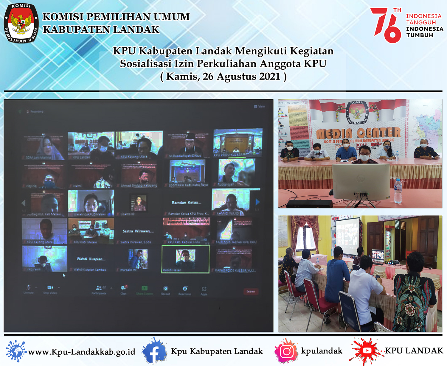 Ketua KPU Kabupaten Landak berserta seluruh Anggota dan Sekretaris mengikuti Kegiatan Sosialisasi Keputusan Komisi Pemilihan Umum Republik Indonesia tentang Teknis Pengajuan Izin Perkuliahan bagi anggiota KPU, KPU Prov dan KPU Kab/Kota yang dilaksanakn oleh KPU Provinsi Kalimantan Barat.