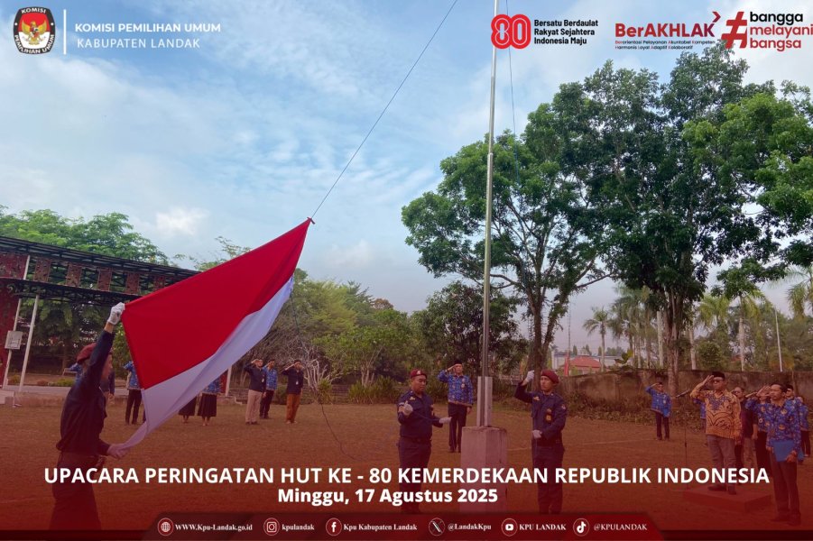 #TemanPemilih, KPU Kabupaten Landak melaksanakan Upacara Peringatan Hari Ulang Tahun ke-80 Kemerdekaan Republik Indonesia Tahun 2025 dengan tema “Bersatu Berdaulat, Rakyat Sejahtera, Indonesia Maju”, di Halaman Kantor KPU Kabupaten Landak, Minggu (17/8). Anggota KPU Kabupaten Landak Musa bertindak sebagai Pembina Upacara, dan diikuti Jajaran KPU Kabupaten Landak.