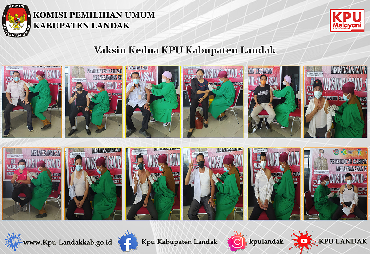 Ngabang (19/07/2021) - Pasca Vaksinasi tahap pertama pada (21/06/2021) lalu, Ketua, Komisioner, Plt.Sekretaris dan seluruh staf KPU Kabupaten Landak mengikuti Kegiatan Vaksinasi Covid-19 tahap kedua. Vaksinasi Covid-19 digelar oleh Dinas Kesehatan Kabupaten Landak diselenggarakan pada Senin 19 Juli 2021 di Aula Lantai II Kantor Bupati Kabupaten Landak.